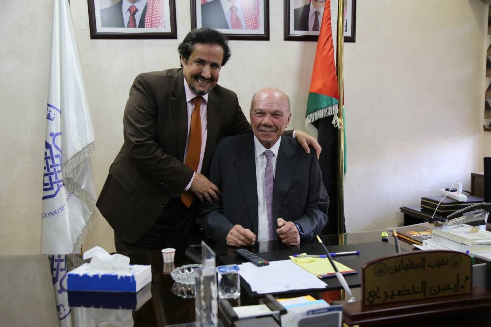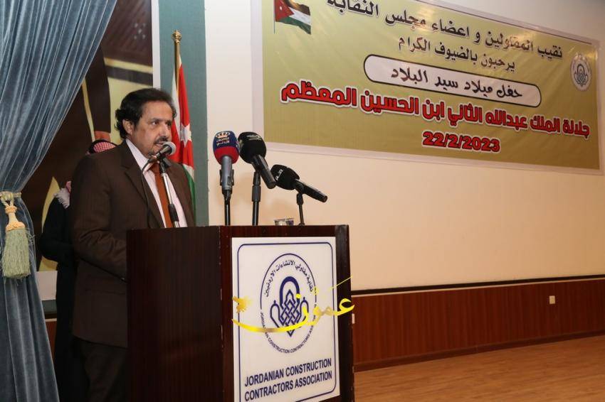 وتابع : "تأسست نقابة المقاولين عام 1972، وهي تشكل حلقة الوصل ما بين مؤسسات الحكم الرسمية وهيئتها العامة من المقاولين، ويعتبر قطاع المقاولات من أكبر القطاعات الاقتصادية التي تساهم في الاقتصاد الأردني، وهو القطاع الأكبر من حيث توفيره لفرص العمل وبالتالي التقليل من حجم البطالة، ويعمل فيه ما يقارب من 3000 شركة أردنية تملك إمكانيات وخبرات عالية"، مؤكداً أن قطاع المقاولات مؤشر على ازدهار الدولة الأردنية اقتصاديا وهو يحرك 48 إلى 62% من الصناعات، إلى جانب وجود 90 إلى 120 مهنة وصناعة مرتبطة بقطاع المقاولات بشكل مباشر أو غير مباشر، ويساهم بـ 5 إلى 10% من الوظائف المباشرة، و20% من الوظائف غير المباشرة.