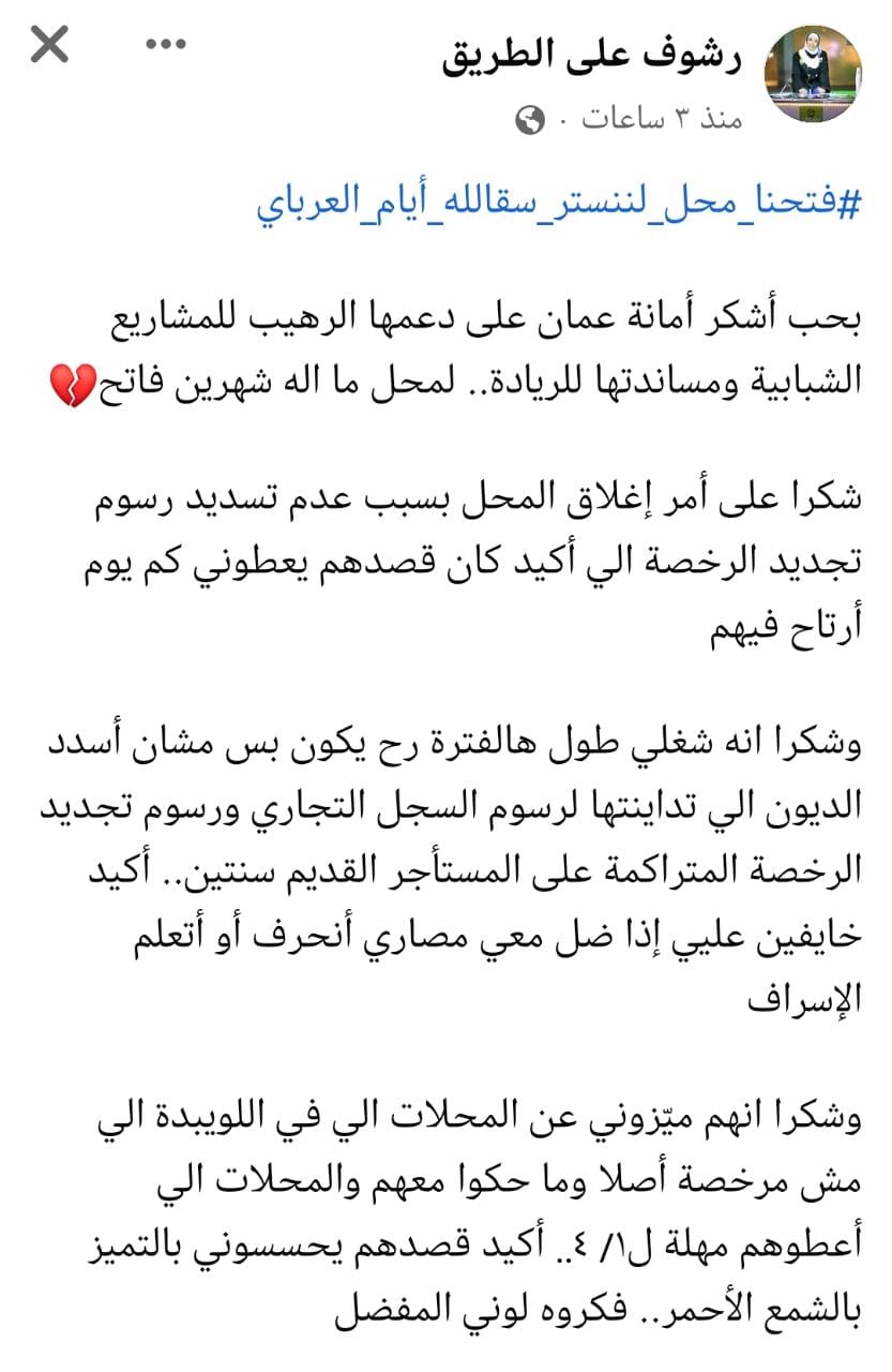 بحب أشكر أمانة عمان على دعمها الرهيب للمشاريع الشبابية ومساندتها للريادة.. لمحل ما اله شهرين فاتح.