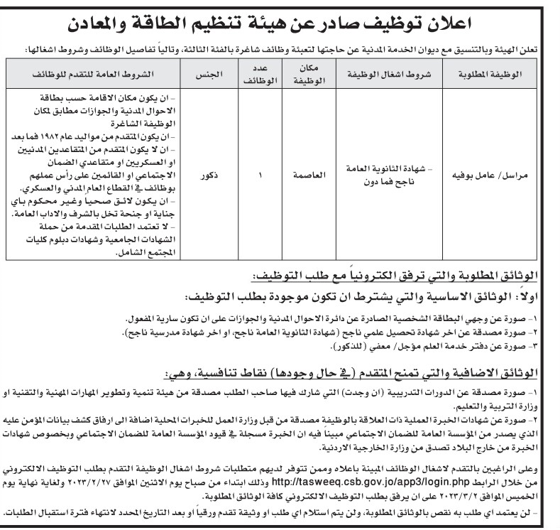 وأعلن عن وظائف شاغرة بالتنسيق مع الوزارات والمؤسسات حكومية.