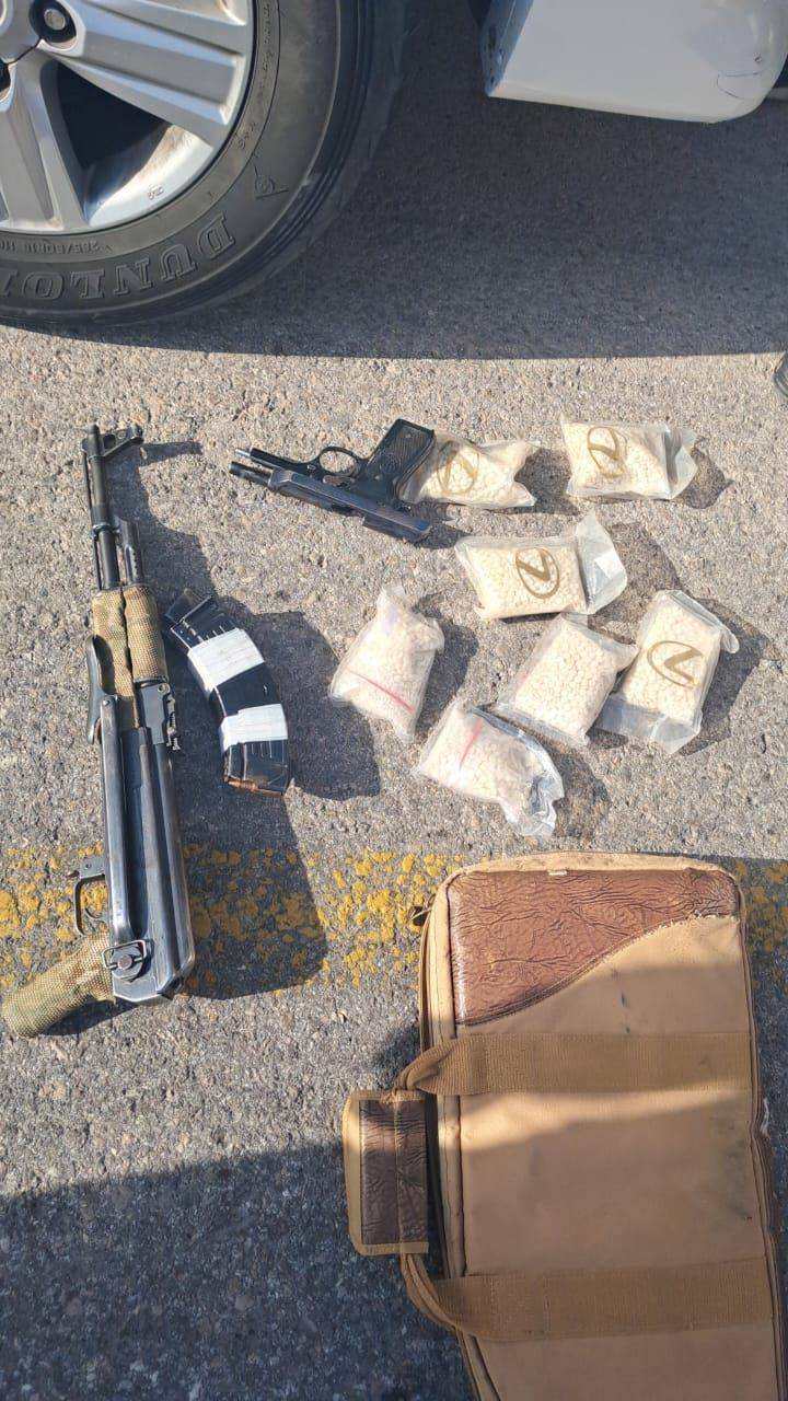 وأكّد انه ومن خلال تلك القضايا القي القبض على 11 تاجراً مروجا للمخدرات وضبط بحوزتهم كميات كبيرة من المواد المخدرة والاسلحة النارية ففي البادية الوسطى تم التعامل مع قضيتين دوهمت في الاولى خيمة استخدمها 3 أشخاص من تجار المخدرات لتخزين كمية كبيرة من الحبوب المخدرة والقي القبض عليهم وضبط داخل الخيمة 20 الف حبة مخدرة فيما جرى في القضية الثانية القاء القبض على شخص من تجار المخدرات اثناء نقله للمواد المخدرة باتجاه احدى محافظات الجنوب وضبط بحوزته سبعة كفوف من الحشيش .