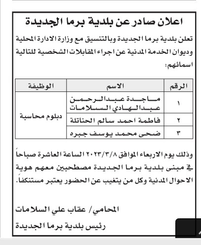 مدعوون لإجراء المقابلات الشخصية - اسماء