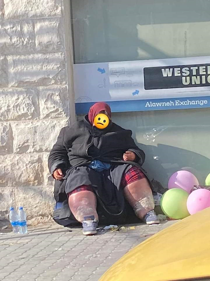 تداول نشطاء على مواقع التواصل الاجتماعي صورة لسيدة مريضة تنام على الارصفة في شوارع اربد .
