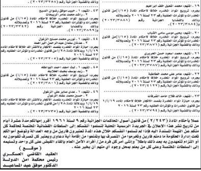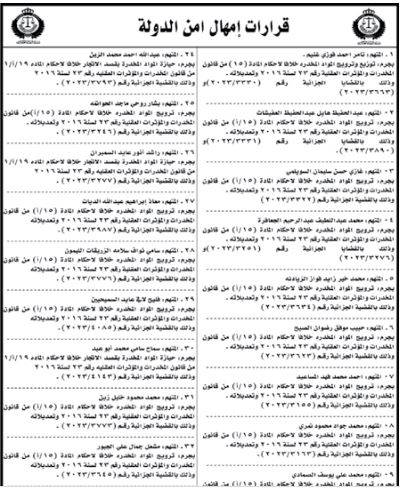أعلنت محكمة أمن الدولة، عن اعطاء مهلة لمدة 10 أيام لمتهمين، وذلك لتسليم أنفسهم للسلطات القضائية المختصة لمحاكمتهم على التهم المسندة إليهم.