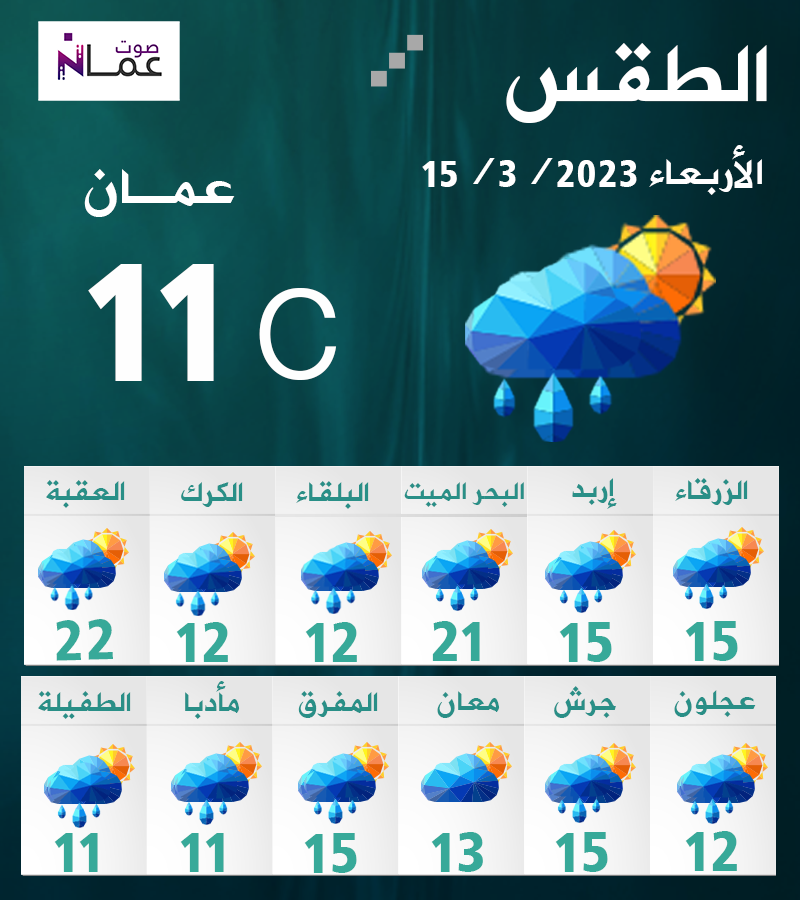 وبحسب "طقس العرب" يطرأ انخفاض على درجات الحرارة ، وتكون أبرد من مُعدلاتها المُعتادة بِعدّة درجات مع استمرار فرص هطول زخات من الأمطار بين الحين والآخر في بعض المناطق.