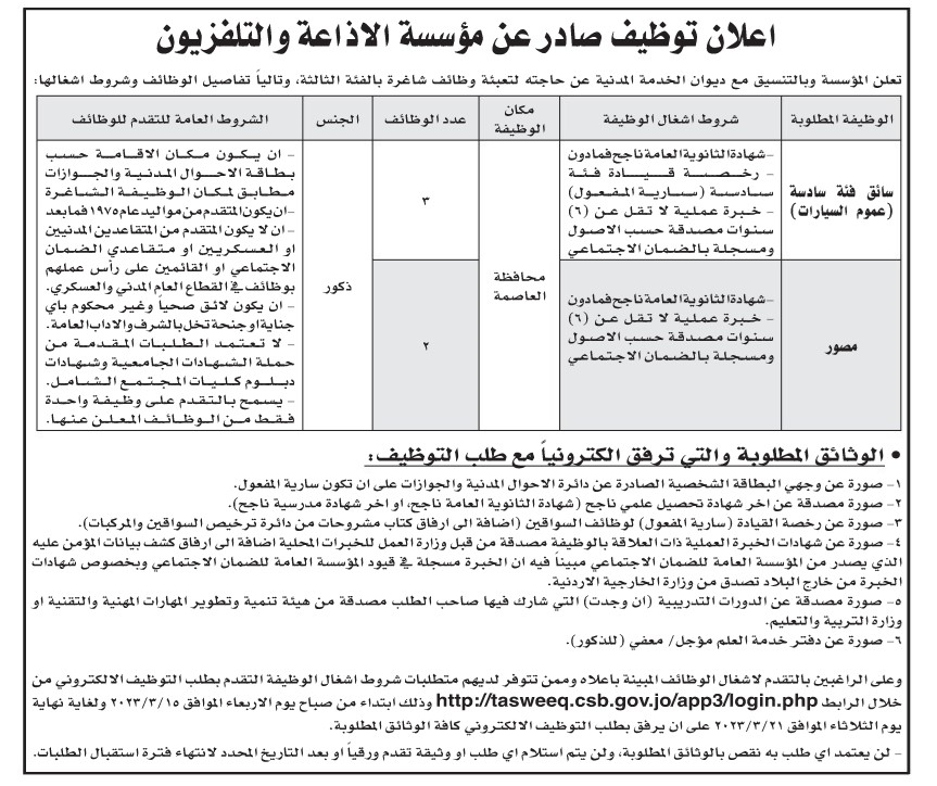 أعلن ديوان الخدمة المدنية بالتنسيق مع الوزارات والمؤسسات الحكومية عن وظائف شاغرة.