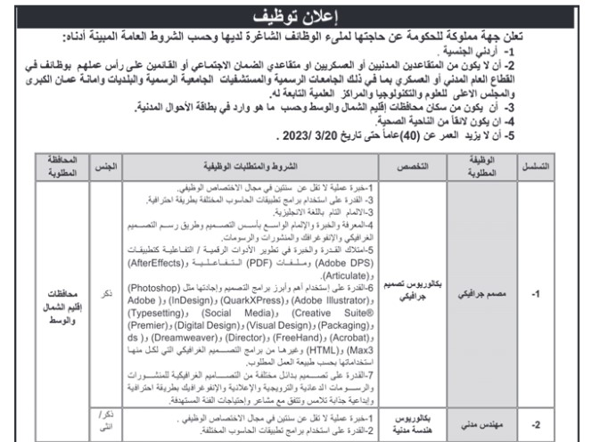 الحكومة تعلن عن وظائف شاغرة - تفاصيل