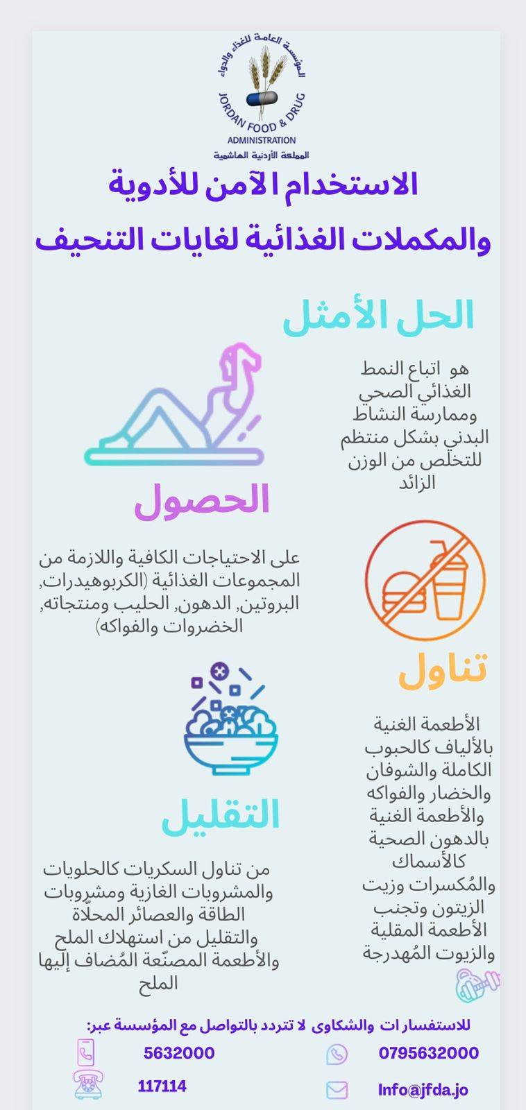 أصدرت المؤسسة العامة للغذاء والدواء، اليوم الخميس، نشرة توعوية حول  بدائل من استخدام للأدوية والمكملات الغذائية أو العشبية لغايات التنحيف.