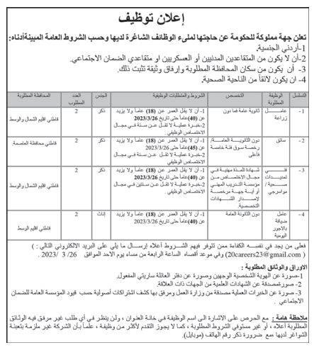 أعلن ديوان الخدمة المدنية بالتنسيق مع عدد من المؤسسات الحكومية،اليوم الثلاثاء، عدد من الوظائف الشاغرة لديه.