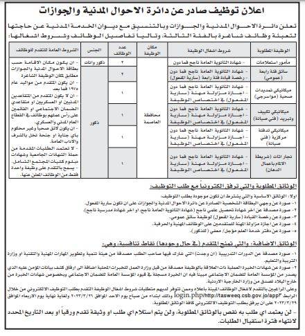 ديوان الخدمة يعلن عن وظائف شاغرة