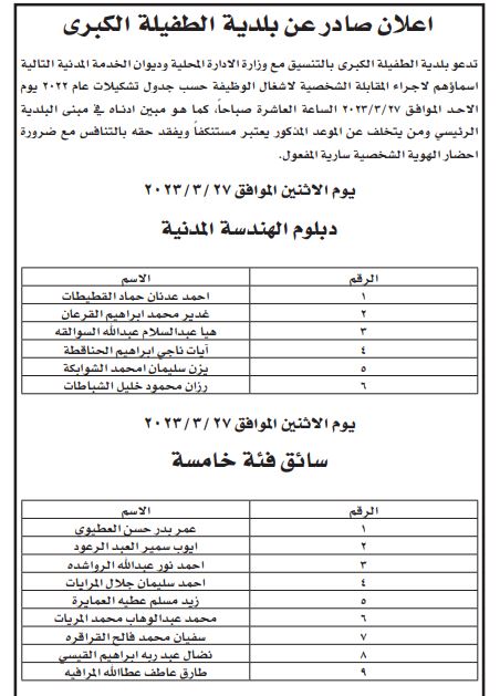 مدعوون لإجراء مقابلات شخصية ووظائف شاغرة - أسماء