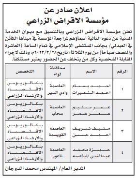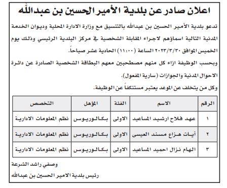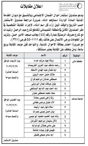 مدعوون لإجراء مقابلات شخصية –التفاصيل