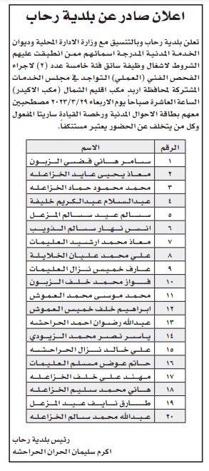 دعا ديوان الخدمة المدنية ،اليوم الأحد، بالتنسيق مع المؤسسات الرسمية والبلديات مرشحين لإجراء المقابلات الشخصية.