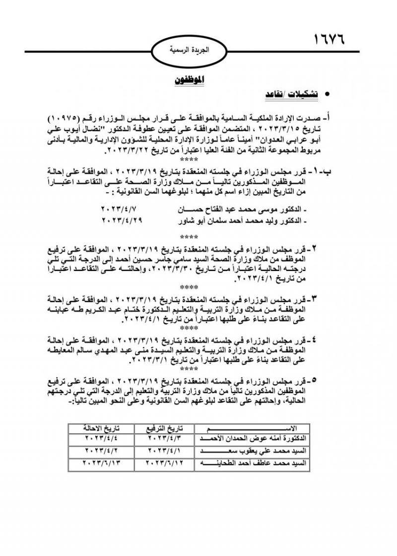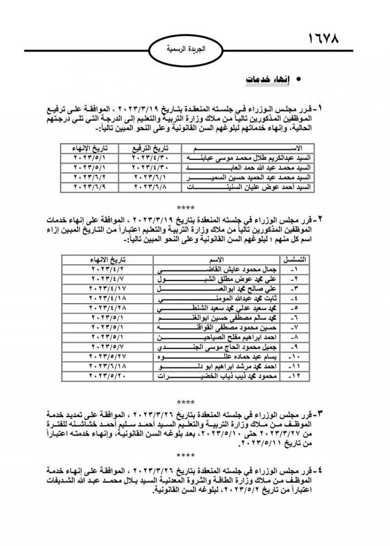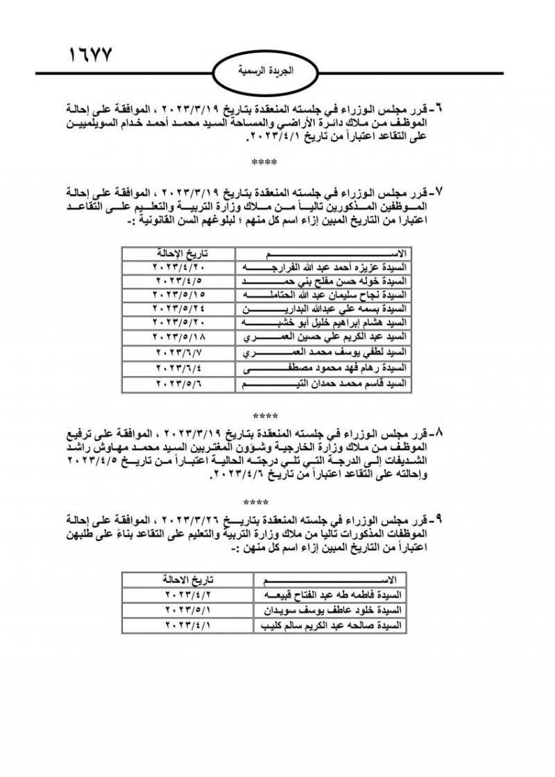 قرر مجلس الوزراء إحالة عدد من موظفي الدولة الى التقاعد وانهاء خدمات آخرين.