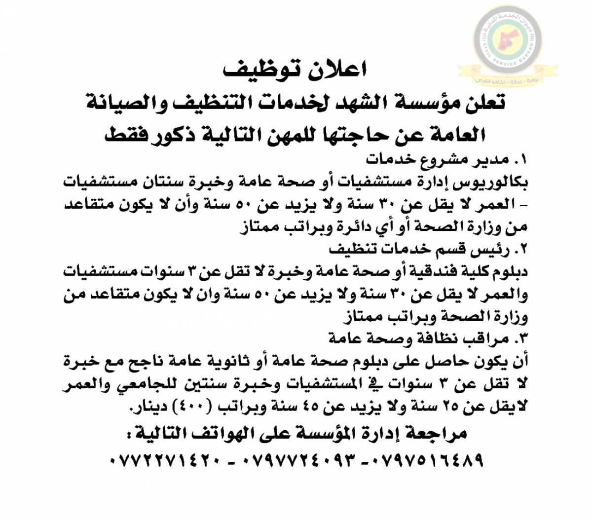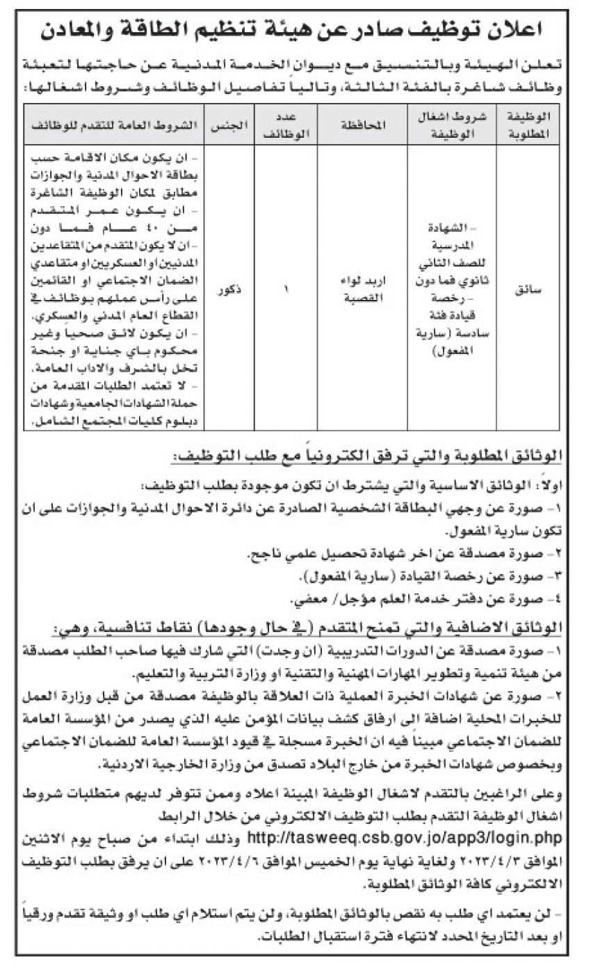 وأعلن عن وظائف شاغرة بالتنسيق مع الوزارات والمؤسسات الحكومية .