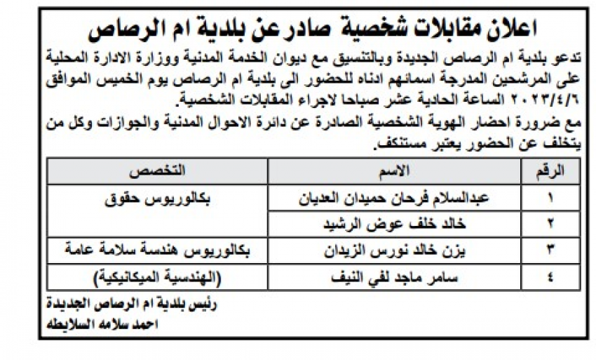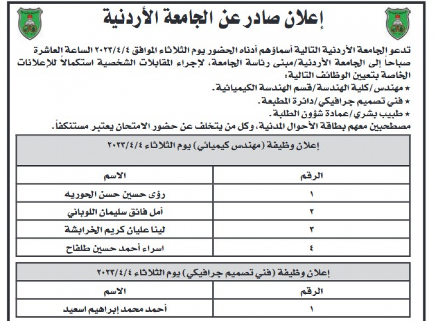وظائف شاغرة ومدعوون للمقابلات الشخصية - أسماء