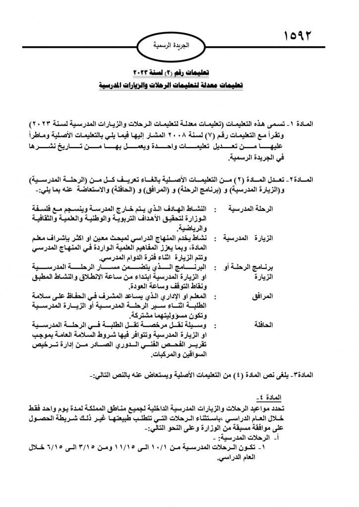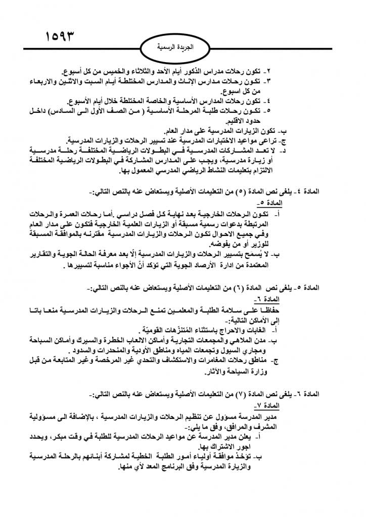 وبحسب القرار، أن تكون الرحلات المدرسية في الأول من تشرين الأول/ أكتوبر إلى 15 تشرين الثاني/نوفمبر ومن 15 آذار/مارس إلى 15 حزيران/ يونيو في العام الدراسي.