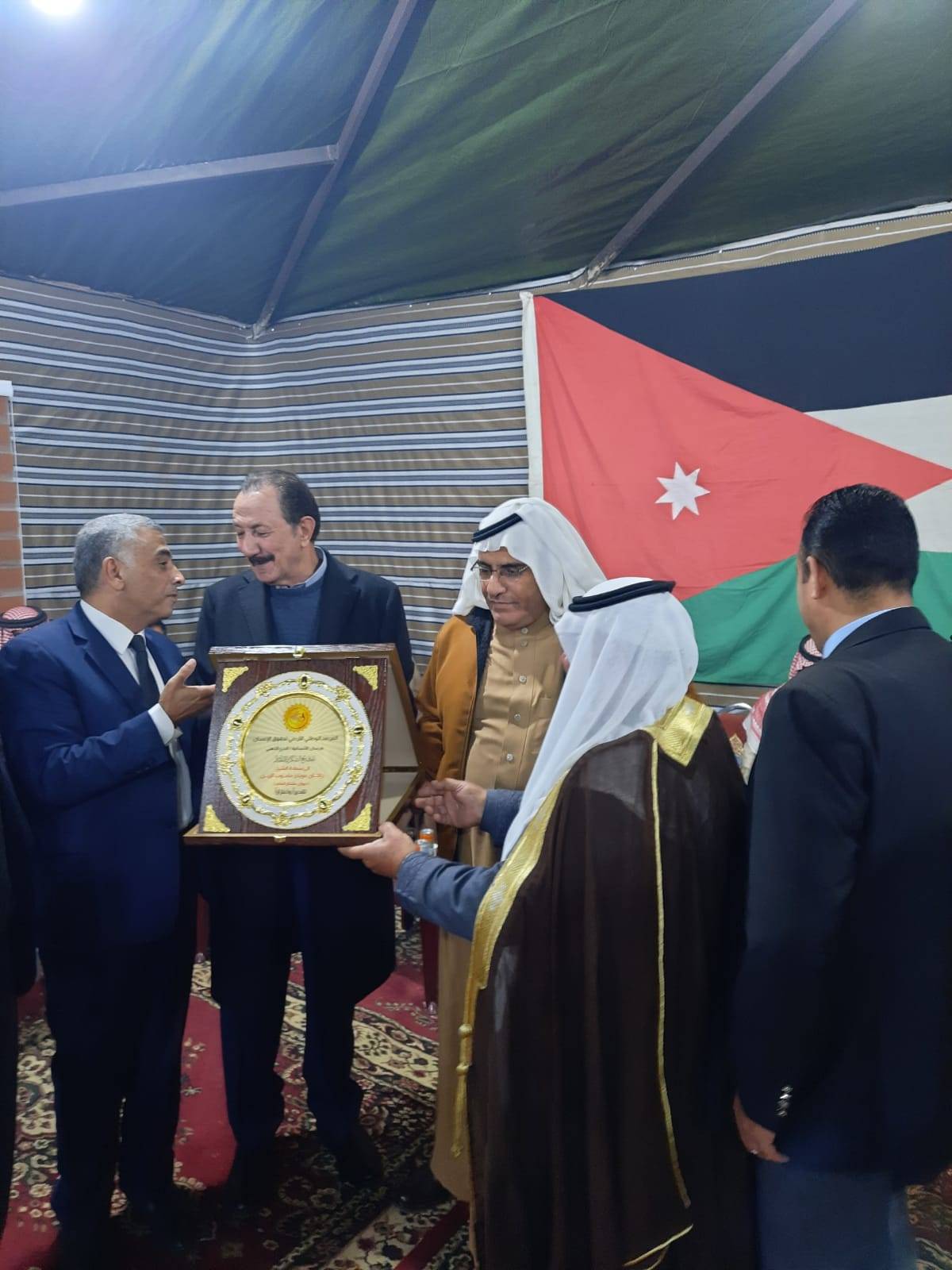والفريق الركن المتقاعد غازي الطيب، واللواء الركن الدكتور عبدالله العثمان، واللواء الركن الدكتور جريد الخوالده والمحافظ وأمين عام وزارة الداخلية السابق رائد سامي العدوان والشيخ مصطفى عليان الزبون حيث سلم السفير عبدالله العفيشات نيابة عن المرصد الوطني الأردني لحقوق الإنسان درع فرسان الإنسانية لعدد من الحضور ممن تركوا بصمات في خدمة الوطن والقيادة الهاشمية الحكيمة .