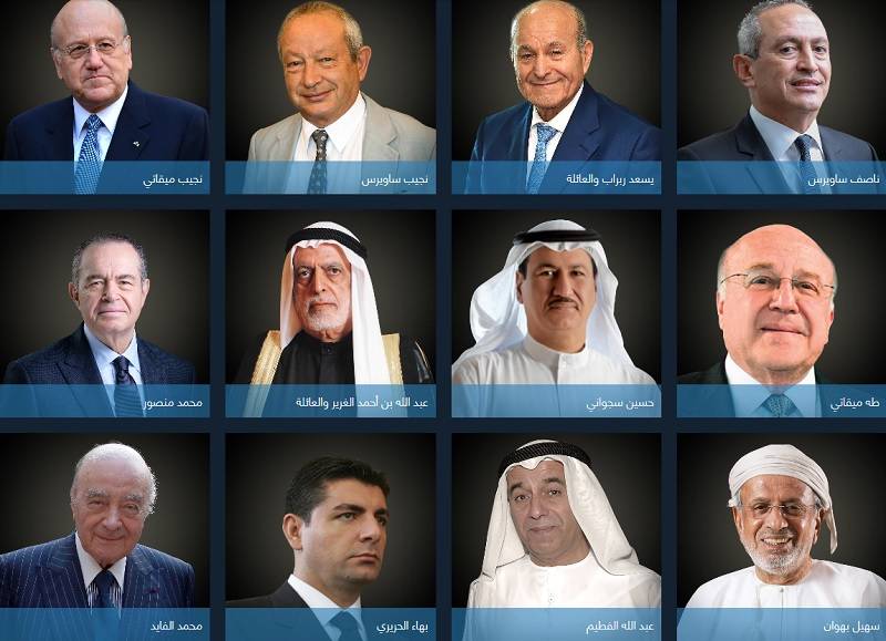 ويبلغ صافي ثروة المليارديرات اللبنانيين 12.6 مليار دولار. ومن بينهم الشقيقين نجيب وطه ميقاتي، وأبناء رئيس وزراء لبنان الراحل رفيق الحريري وهم بهاء وأيمن وفهد الحريري.