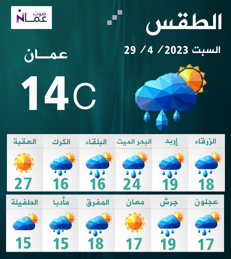 وتكون الأجواء نهاراً، غائمة إلى غائمة جزئيا، وباردة نسبياً في أغلب المناطق، يرافقها هطول لزخات من المطر، في شمال المملكة قد يصحبها الرعد أحياناً، وقد تمتد للمناطق الوسطى مع هبات قوية أحياناً، وتكون الرياح شمالية غربية نشطة السرعة تثير الغبار خاصة في مناطق البادية.