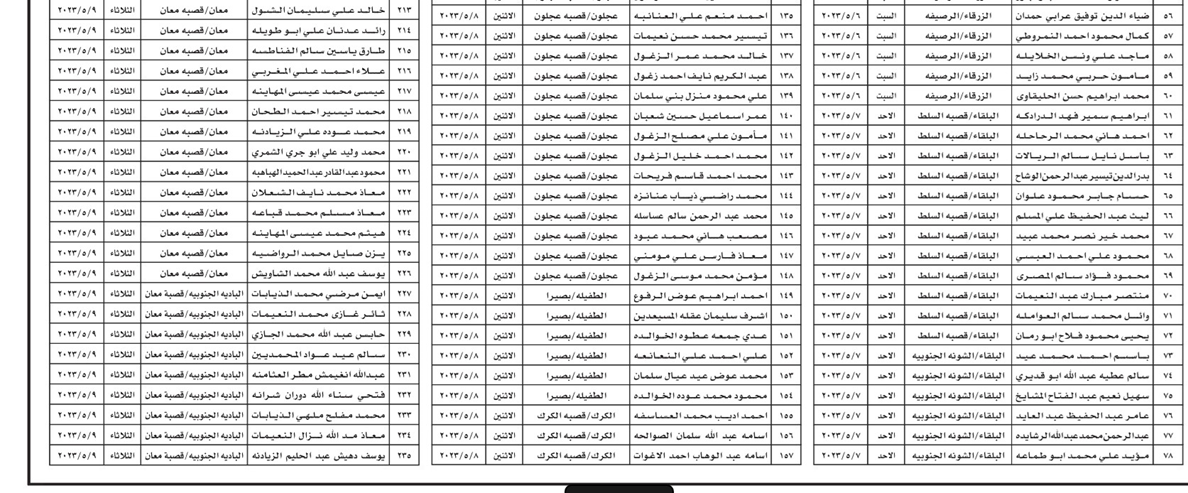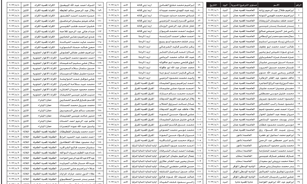 وجهت وزارة التربية والتعليم وبالتنسيق مع ديوان الخدمة المدنية، دعوة لعدد من المرشحين التالية أسماؤهم الذين تم اختيارهم وفق أعلى العلامات في الامتحانات التنافسية، لإجراء المقابلات الشخصية.