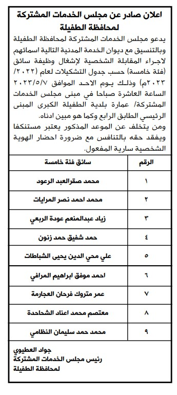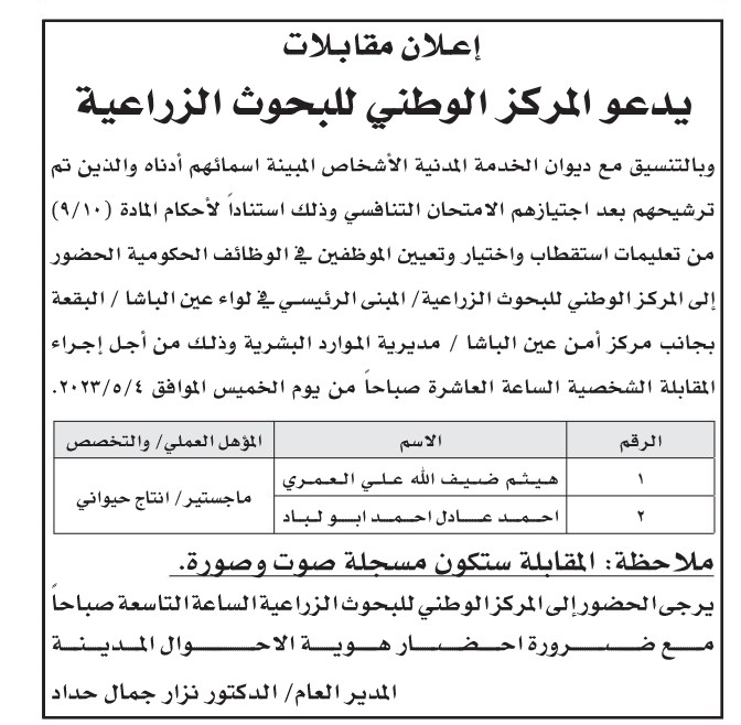 مدعوون لإجراء المقابلة الشخصية في الحكومة - أسماء