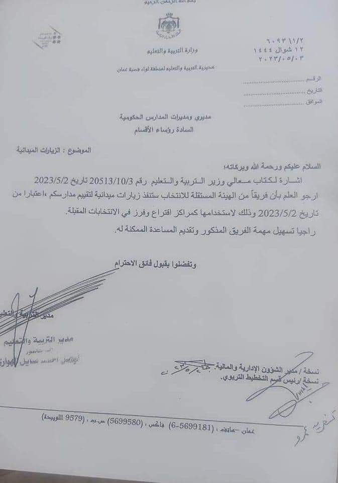 تداول رواد مواقع التواصل الاجتماعي، تعميما موجها لمديري المدارس الحكومية، يقضي بتنفيد زيارات ميدانية للمدارس من قبل الهيئة المستقلة للانتخاب، وذلك لاستخدامها كمراكز اقتراع وفرز في الانتخابات المقبلة.