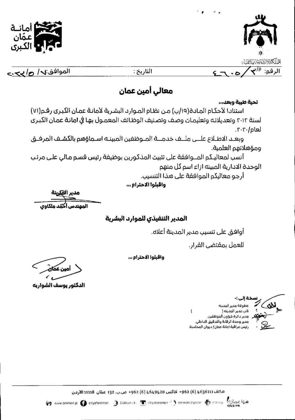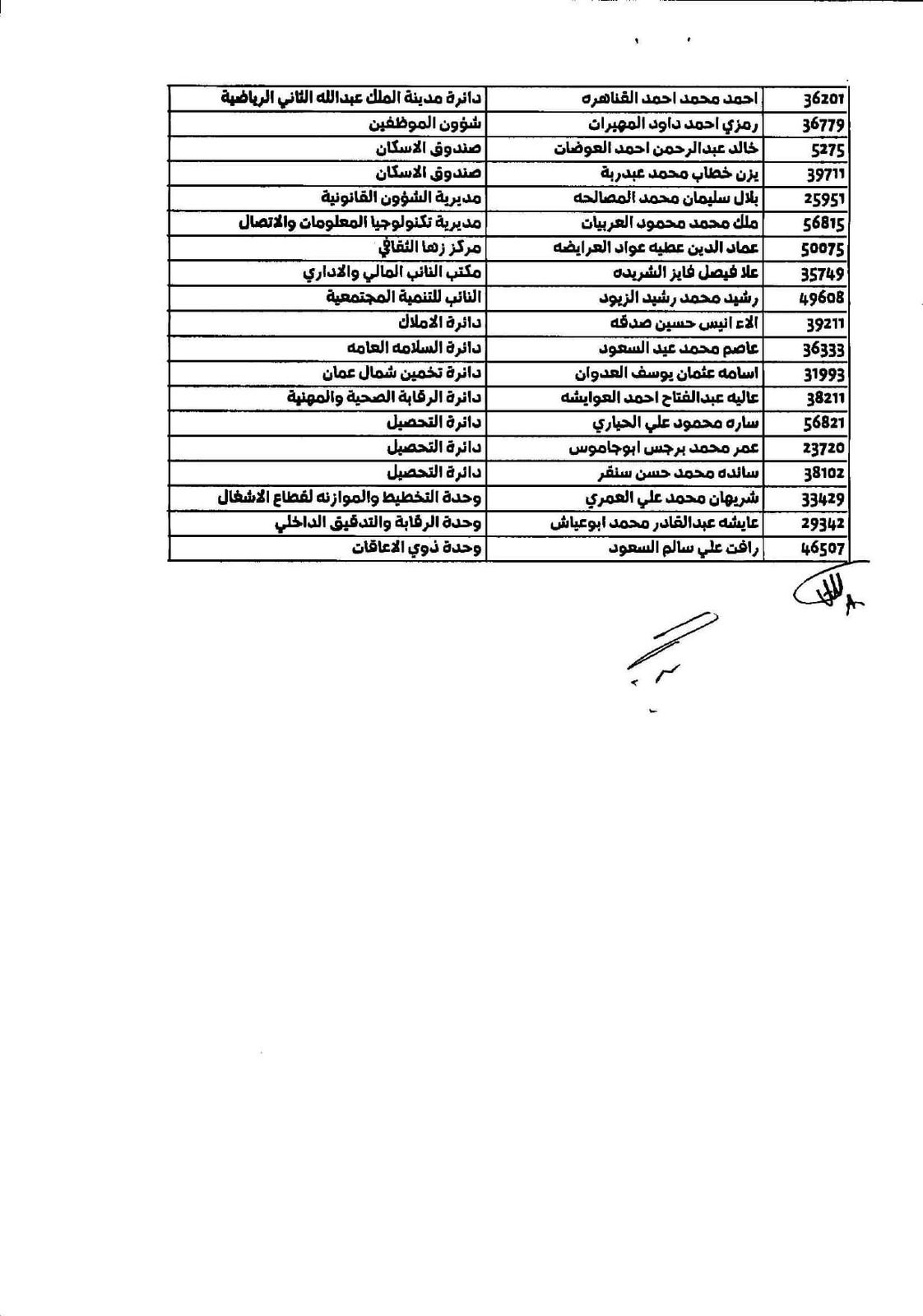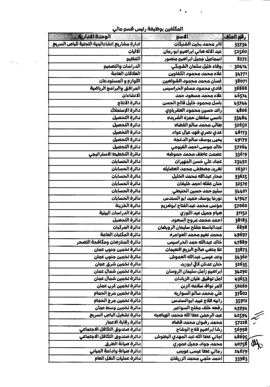 تنقلات في أمانة عمّان - أسماء