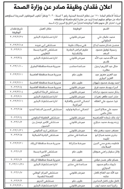 فاقدون لوظائفهم في وزارة الصحة – تفاصيل