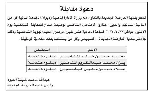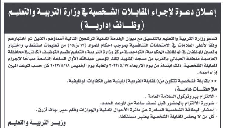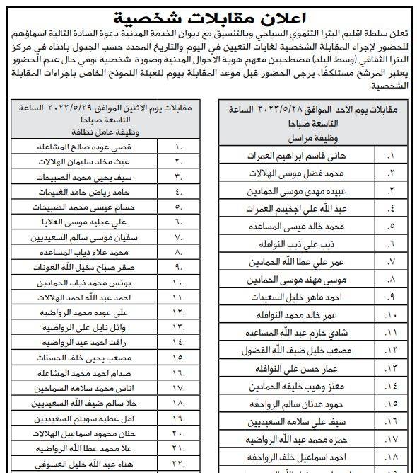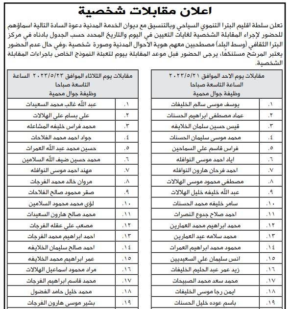 مدعوون لإجراء المقابلة الشخصية في الحكومة - أسماء