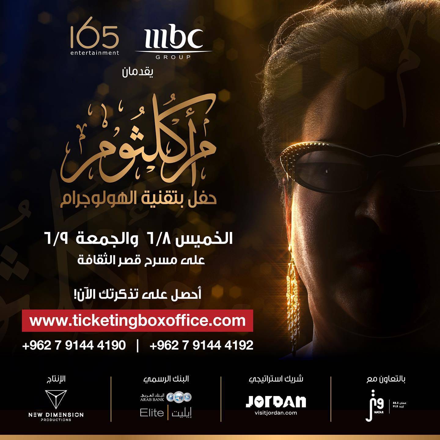 مع تطور التكنولوجيا ونسج الخيال، تطل كوكب الشرق أم كلثوم بصحبة أكثر من ٢٠ عازف أوركسترا، لتطرب المستمعين على مدى يومين بحفل غناء حي، عن طريق استخدام تقنية الهولوغرامي، لأول مرة في الأردن على خشبة مسرح قصر الثقافة،وذلك يومي الجمعة والسبت 6/8/ 2023 و 9/6/2023.