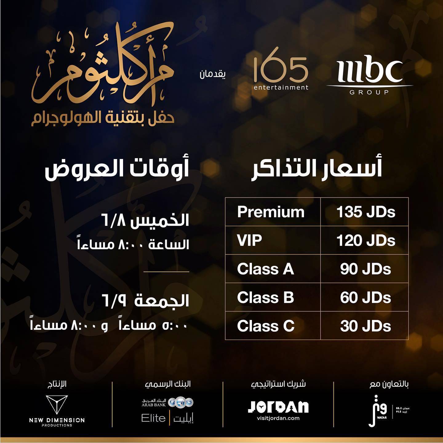 وتصل قيمة أسعار التذاكر، لـ"٤٠ | ٦٠ | ١٠٠ | ١٥٠" دينار.