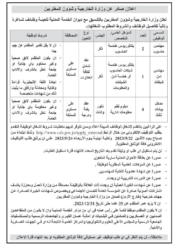 ديوان الخدمة المدنية يعلن عن وظائف شاغرة