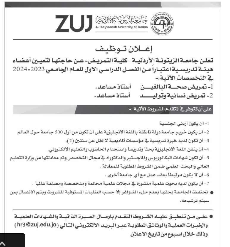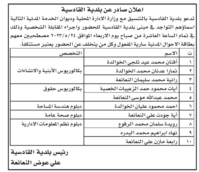 ن حاجتها لتعبئة وظائف شاغرة، كما دعت عدد من المرشحين لاجراء المقابلات الشخصية.