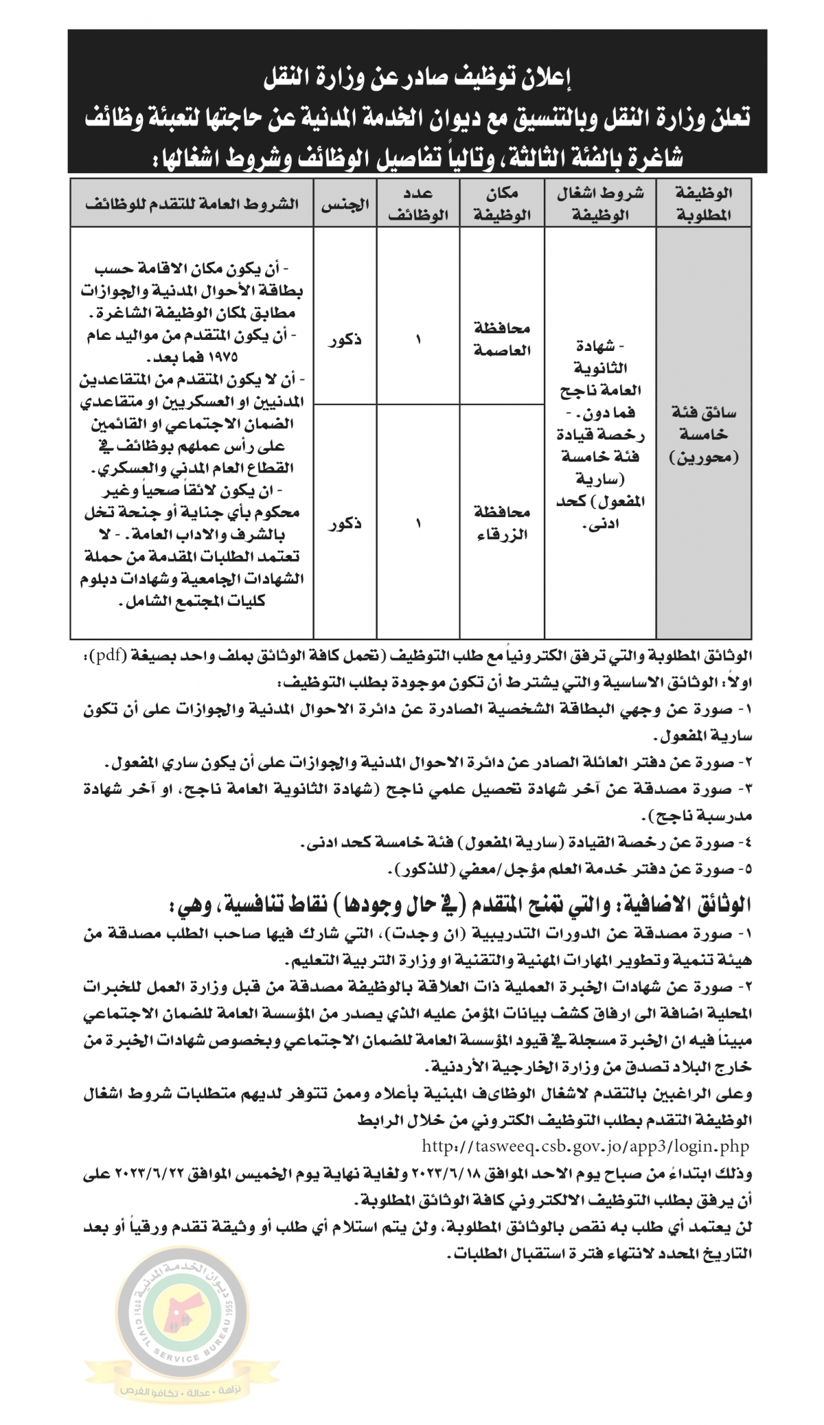ودعا ديوان الخدمة وبالتنسيق مع مختلف المؤسسات والوزارات، إلى تعبئة شواغر مختلفة استنادا للشروط المنصوص عليها.