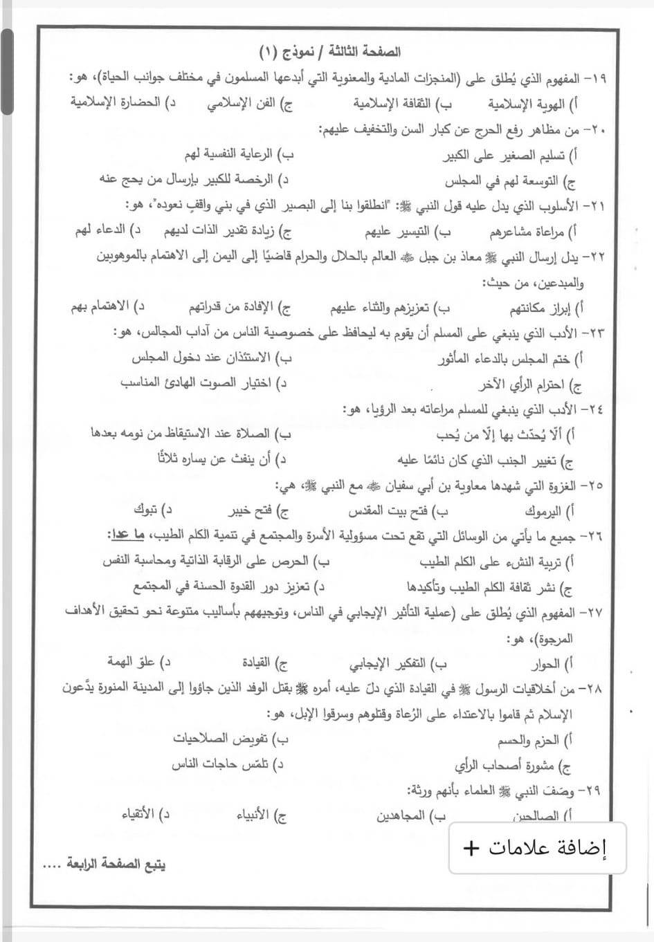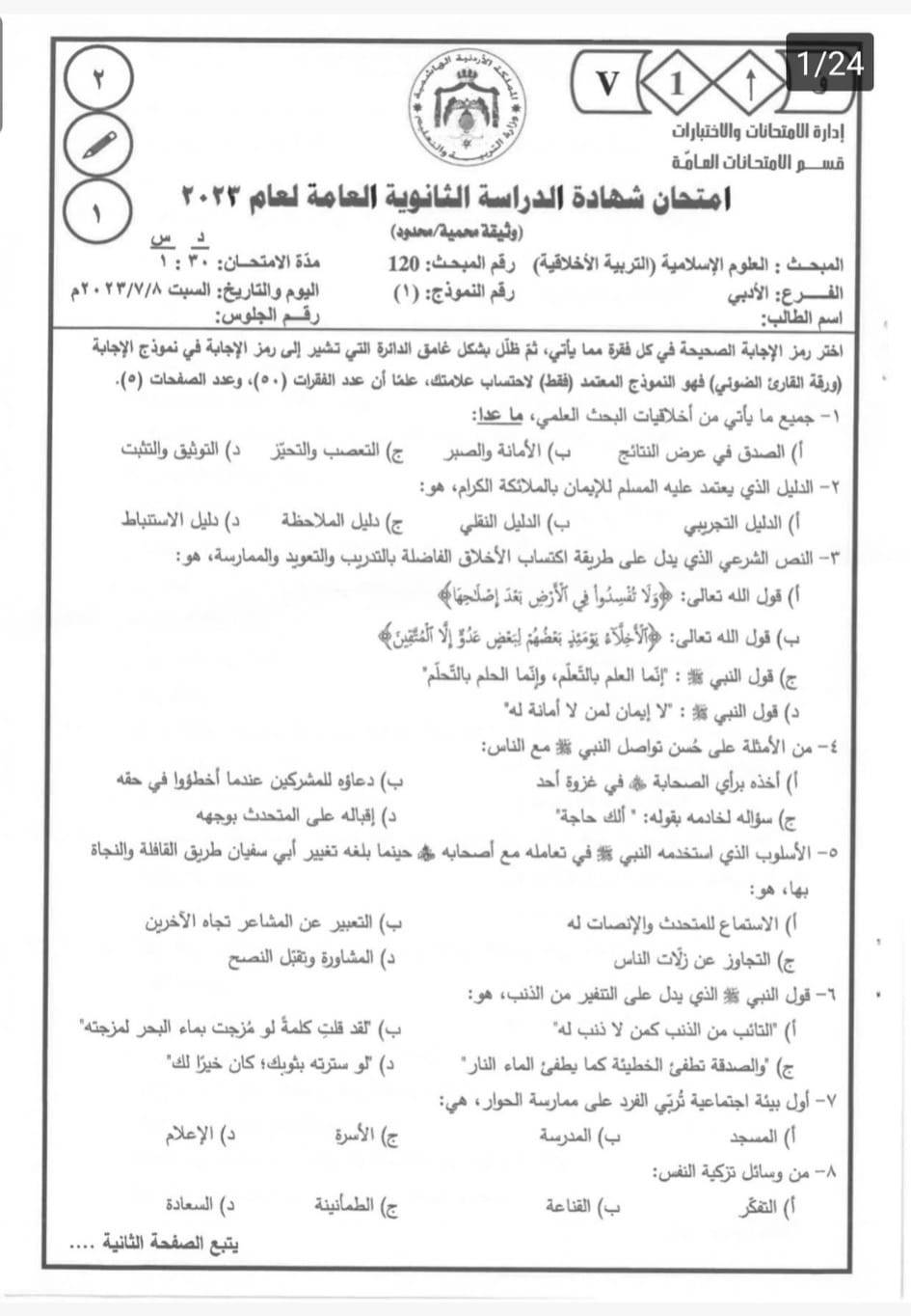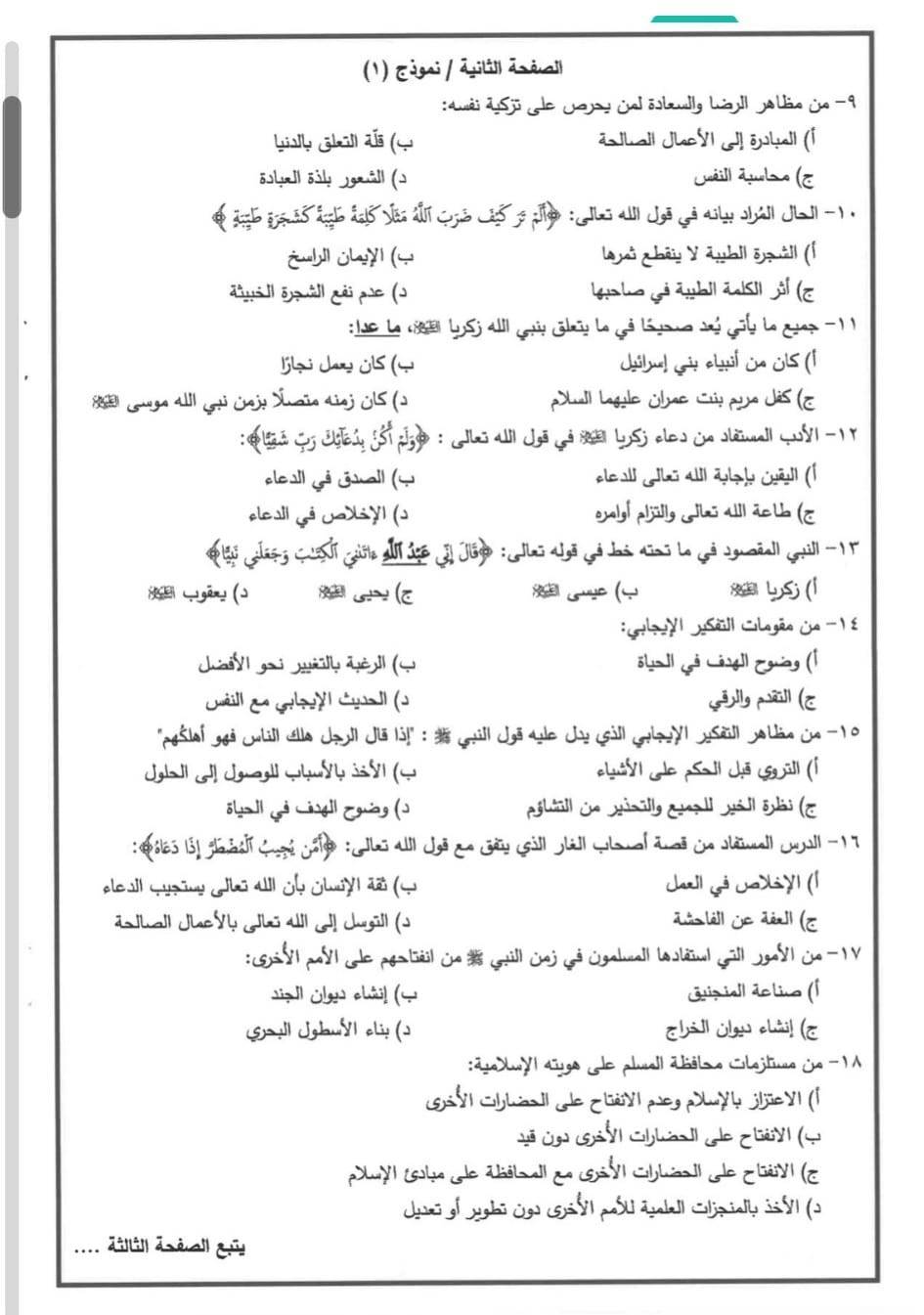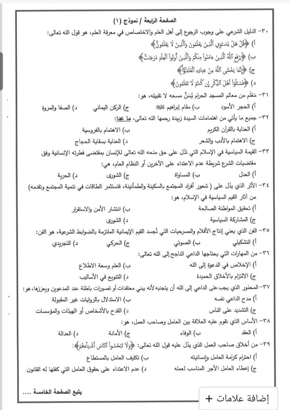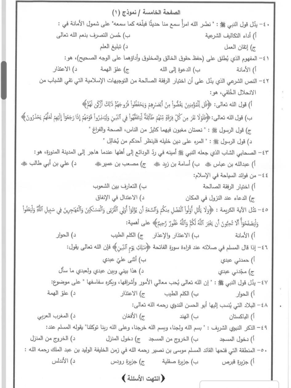 وزارة التربية تنشر أسئلة امتحان العلوم الإسلامية