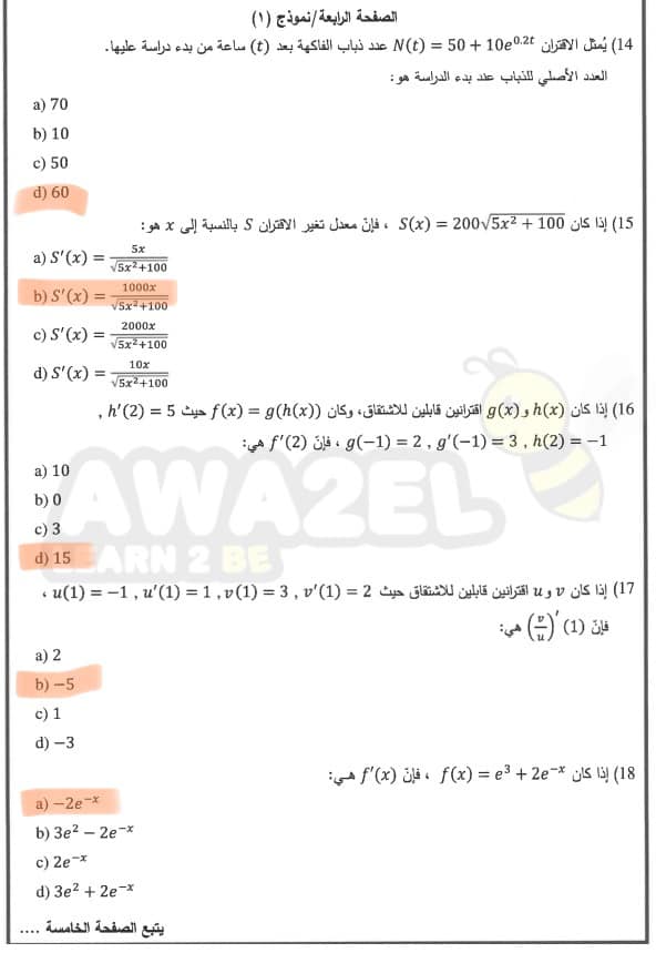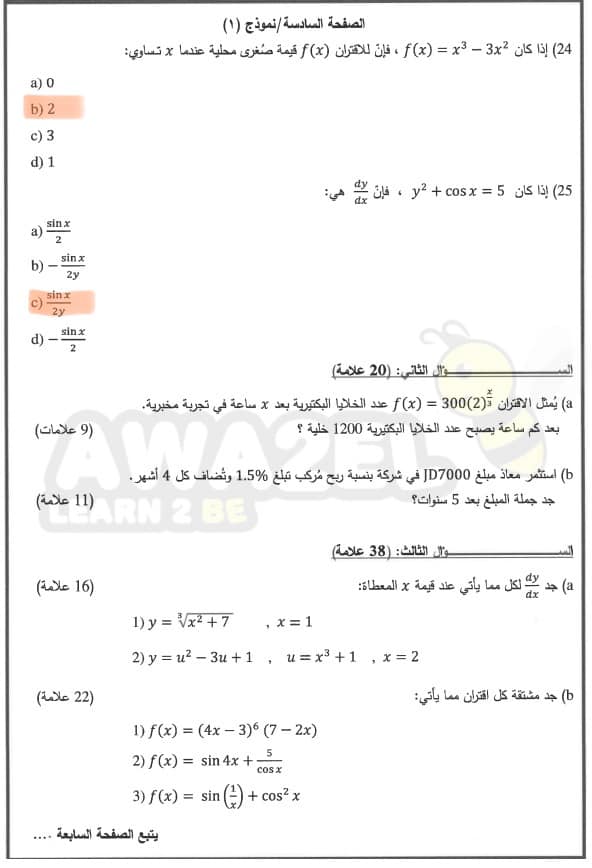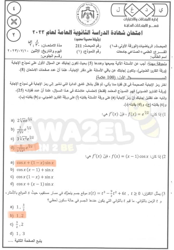 "صوت عمان" ينشر اجابات امتحان الرياضيات