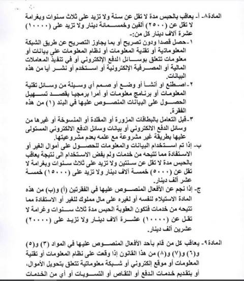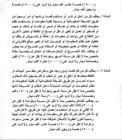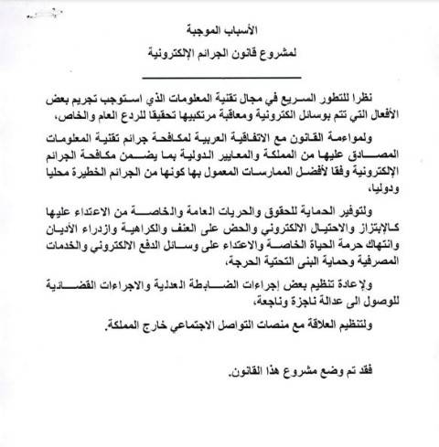 وتاليا؛ نص مشروع قانون الجرائم الإلكترونية والأسباب الموجبة له: