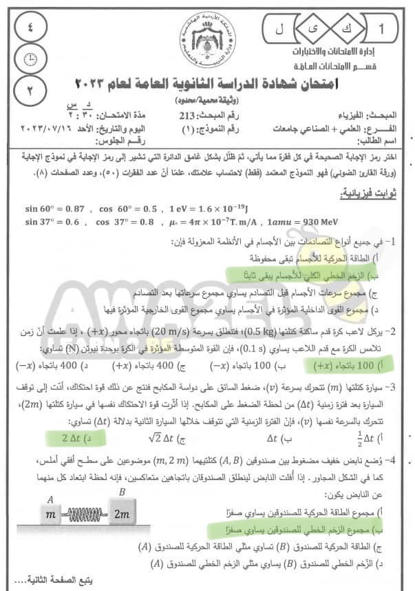 "صوت عمان" ينشر اجابات امتحان الفيزياء