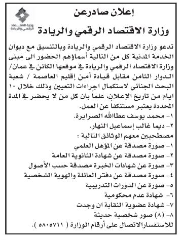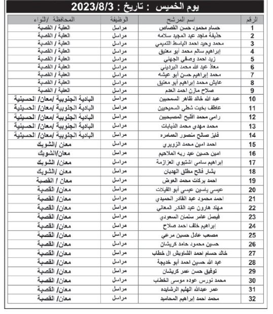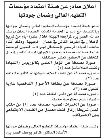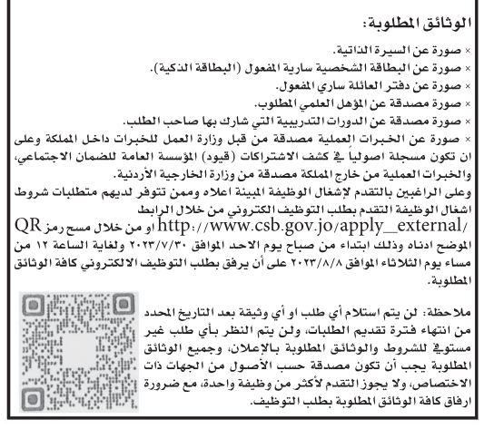 أعلنت دوائر حكومية ، اليوم الخميس، بالتنسيق مع ديوان الخدمة المدنية، عن حاجتها لتعبئة وظائف شاغرة.