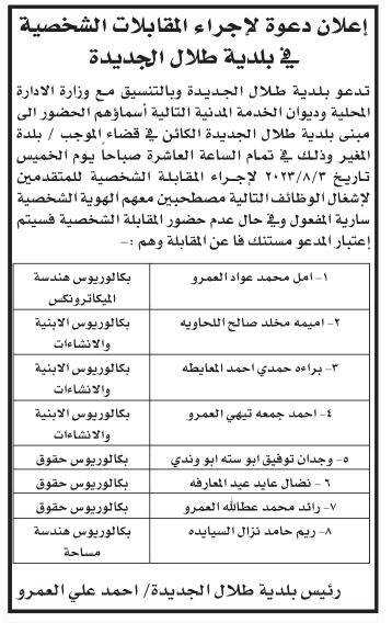 في المقابل دعت عدداً من الوزارات والبلديات والمؤسسات الحكومية مجموعة من المرشحين لإجراء المقابلات الشخصية واستكمال إجراءات التعيين.