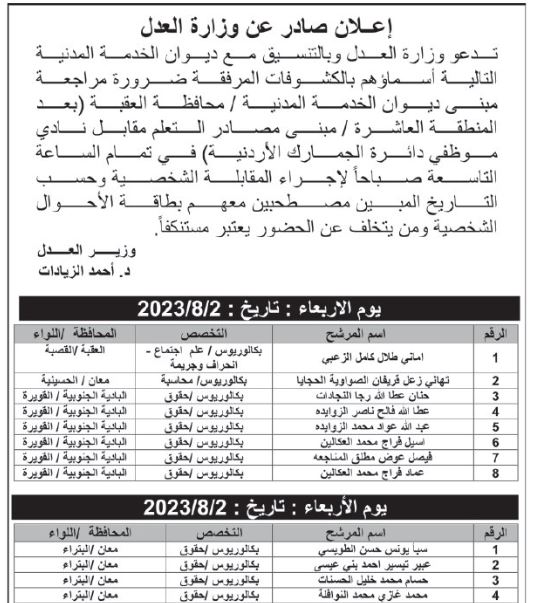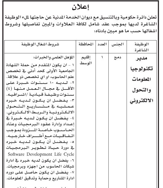 وظائف شاغرة في دوائر حكومية - أسماء