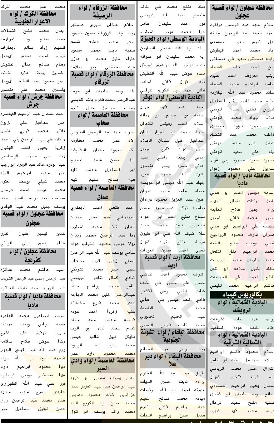 دعا ديوان الخدمة المدنية، بالتنسيق مع وزارة التربية والتعليم، استناداً لتعليمات اختيار وتعيين الموظفين في الوظائف الحكومية المرشحين التالية أسماؤهم أدناه من حملة شهادة البكالوريوس في التخصصات المبينة في الإعلان، التواجد في مبنى ديوان الخدمة المدنية الكائن في طبربور – شارع الأقصى، لحضور الامتحان التنافسي.
