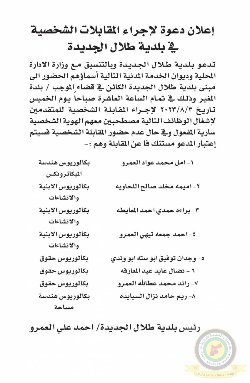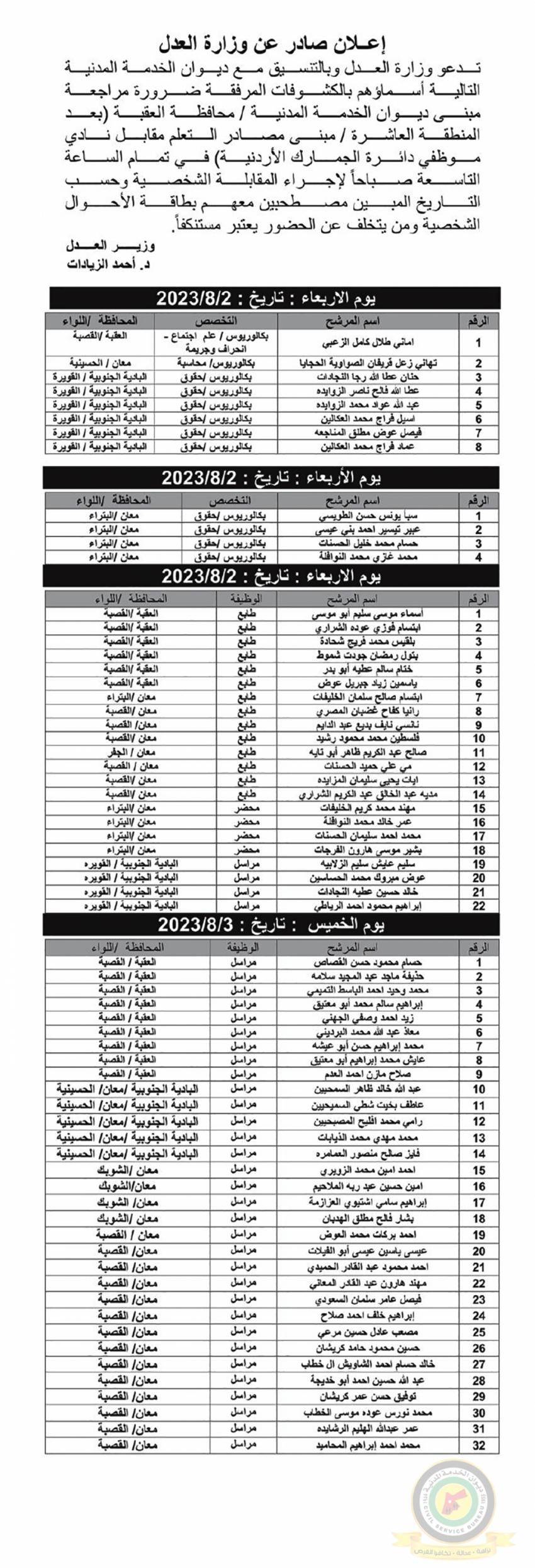 دعا ديوان الخدمة المدنية بالتنسيق مع عدد من الوزارات والمؤسسات الحكومية الأشخاص التالية لإجراء الاختبار التنافسي.
