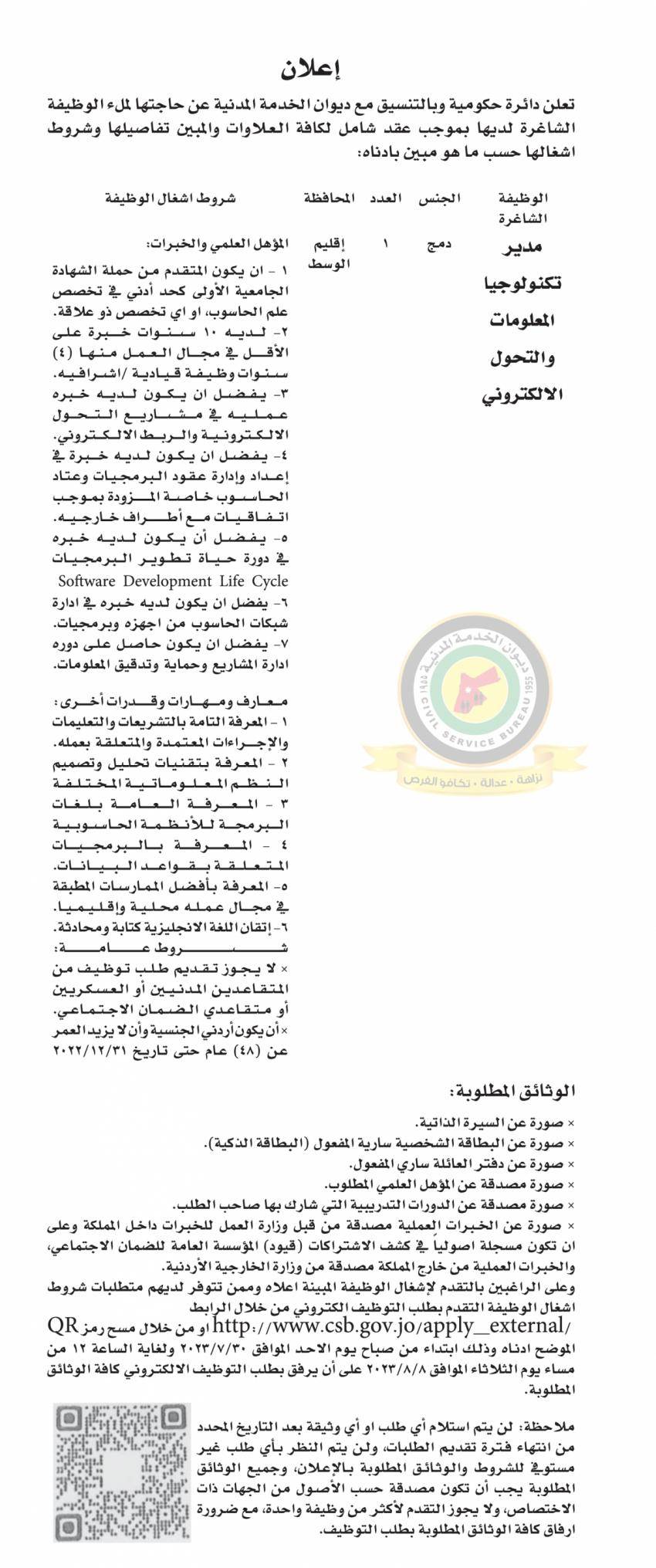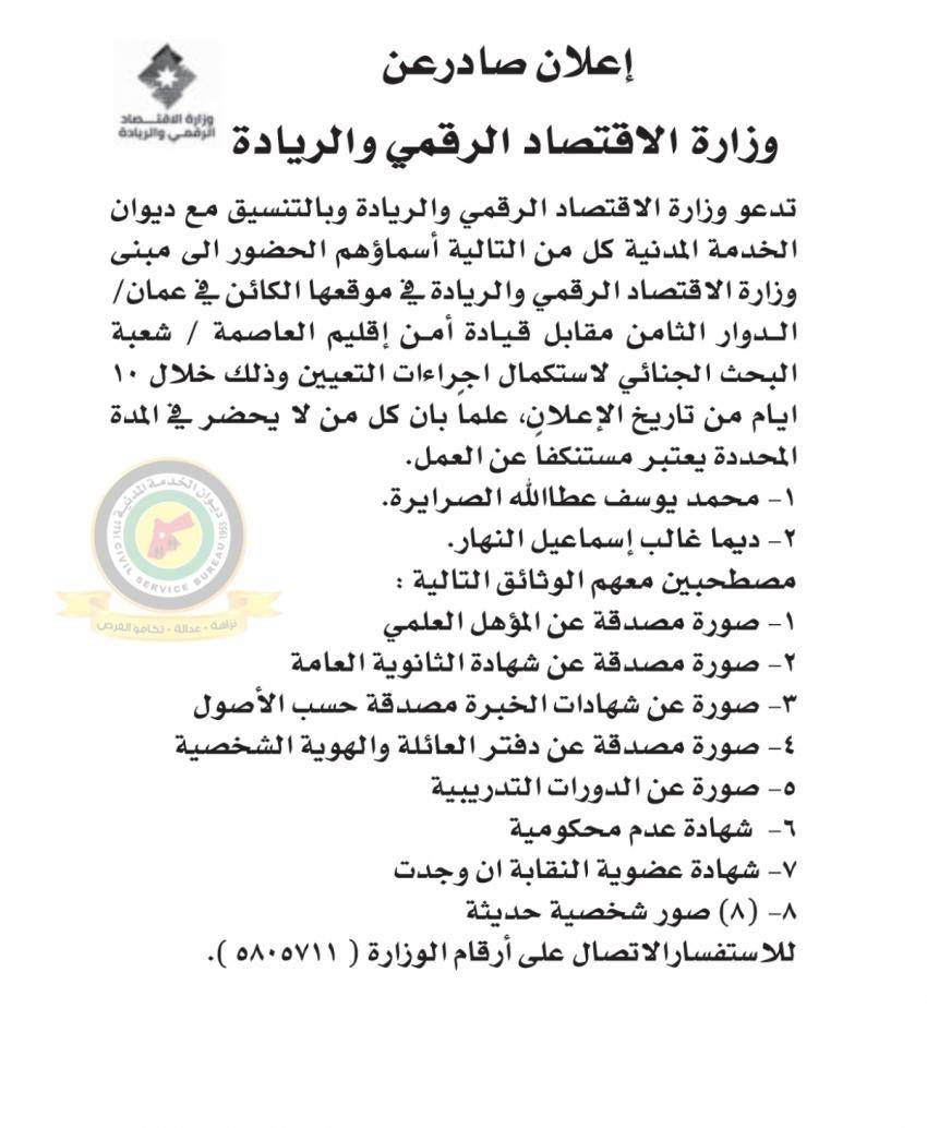 كما أعلن عن وظائف شاغرة بالتنسيق مع الوزارات والمؤسسات الحكومية .