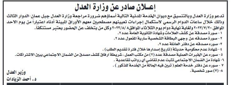 دعت عدداً من الوزارات والمؤسسات الرسمية والبلديات بالتنسيق مع ديوان الخدمة المدنية اليوم الأحد، مرشحين لإجراء المقابلات الشخصية واستكمال إجراءات التعيين.