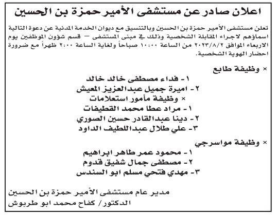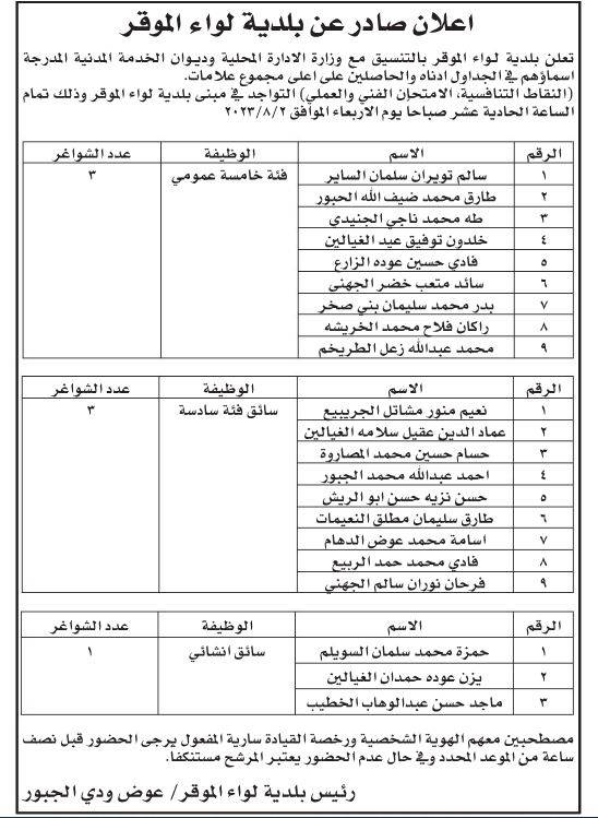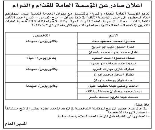 مدعوون لإجراء مقابلات شخصية واستكمال إجراءات التعيين - أسماء