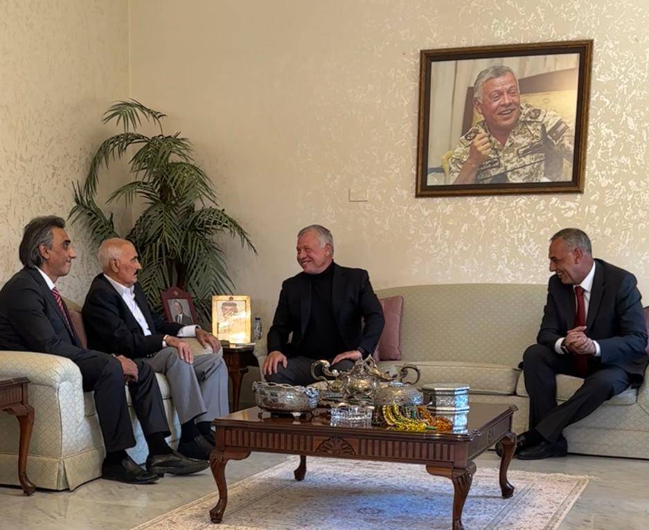 وجاءت زيارة جلالته في منزل العدوان، وذلك للاطمئنان على صحته.