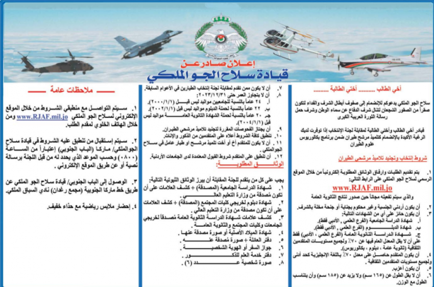 دعا سلاح الجو الملكي للانضمام إلى صفوفه عبر مقابلة لجنة الانتخاب إذا توافرت الرغبة بالانضمام كتلميذ مرشح طيران ضمن برنامج بكالوريوس علوم الطيران.