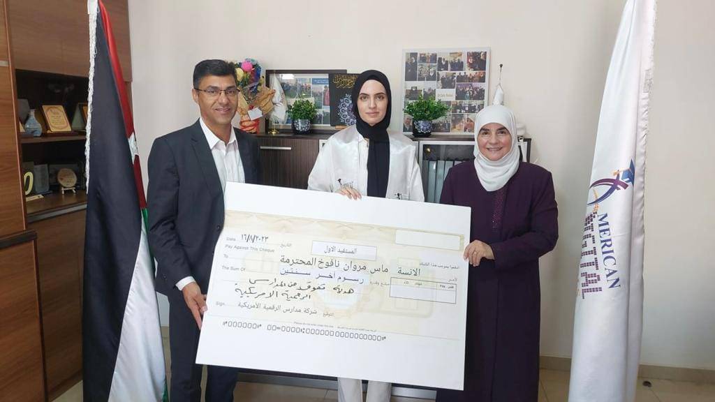 وسلمت المدرسة الطالبة ماس مروان نافوخ والتي حازت على معدل 99.75 في الثانوية العامة، شيكا برسوم آخر سنتين كهدية بسبب تفوقها.