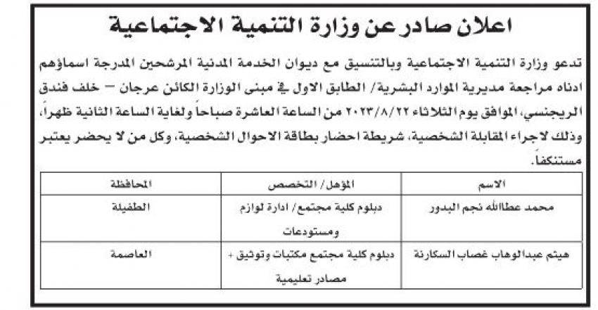 مدعوون للتعيين في وزارات ومؤسسات حكومية